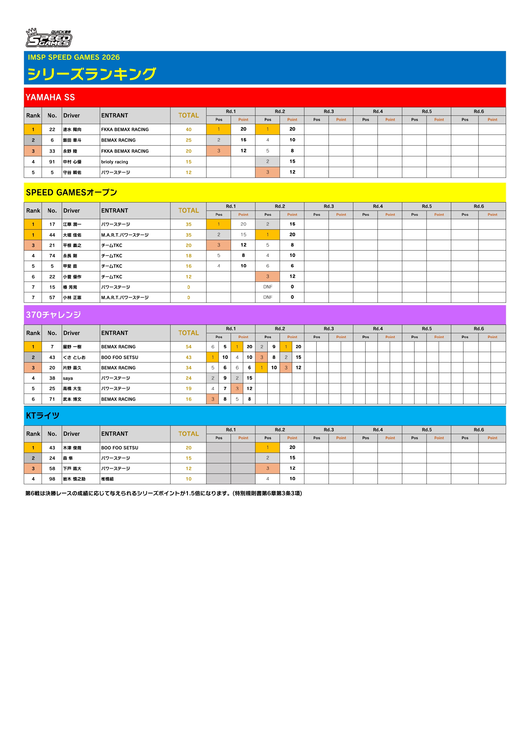 IMSP SPEED GAMESのYAMAHA SS、YAMAHAカデットオープンほか「SLカートミーティング」公式クラスへ参戦の方は。出場実績証明書を含むメンバーズブックのセットを更新購入が必要となります。
