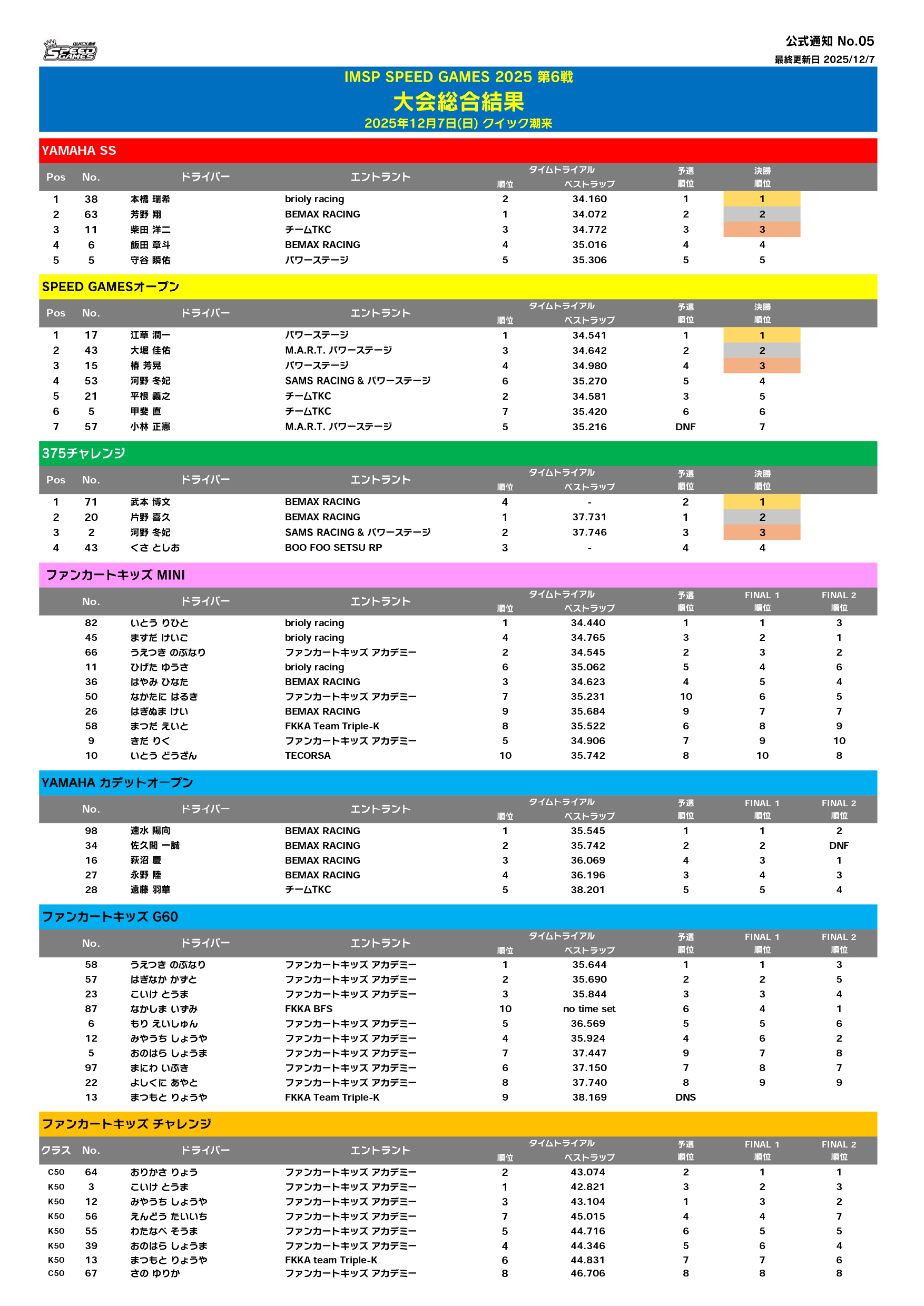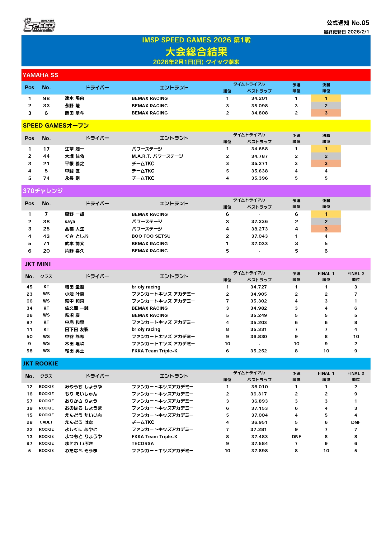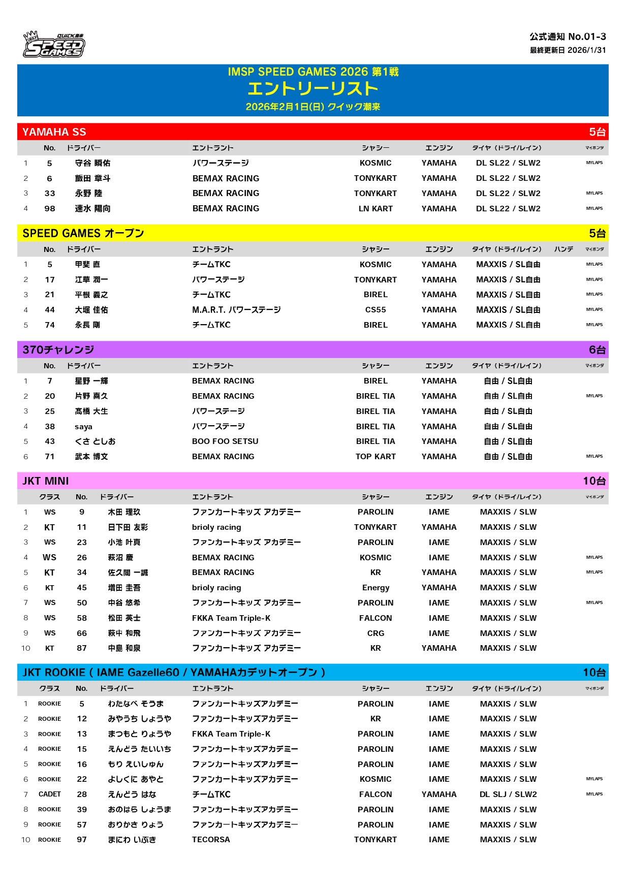 IMSP SPEED GAMESのYAMAHA SS、YAMAHAカデットオープンほか「SLカートミーティング」公式クラスへ参戦の方は。出場実績証明書を含むメンバーズブックのセットを更新購入が必要となります。