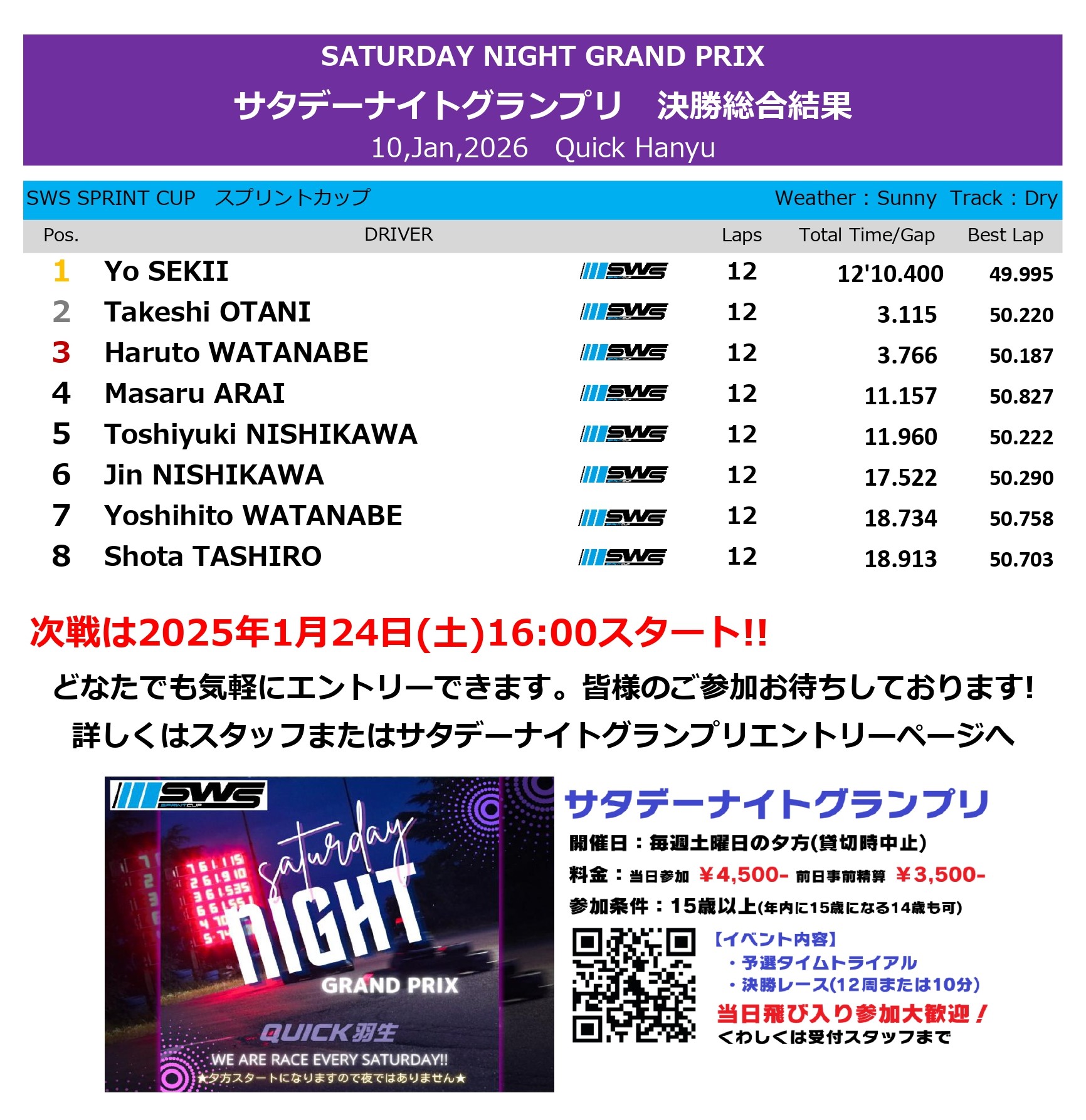 ・ 2月 8日 第40回サタデーナイトグランプリ 優勝:Yuuki NUNODA