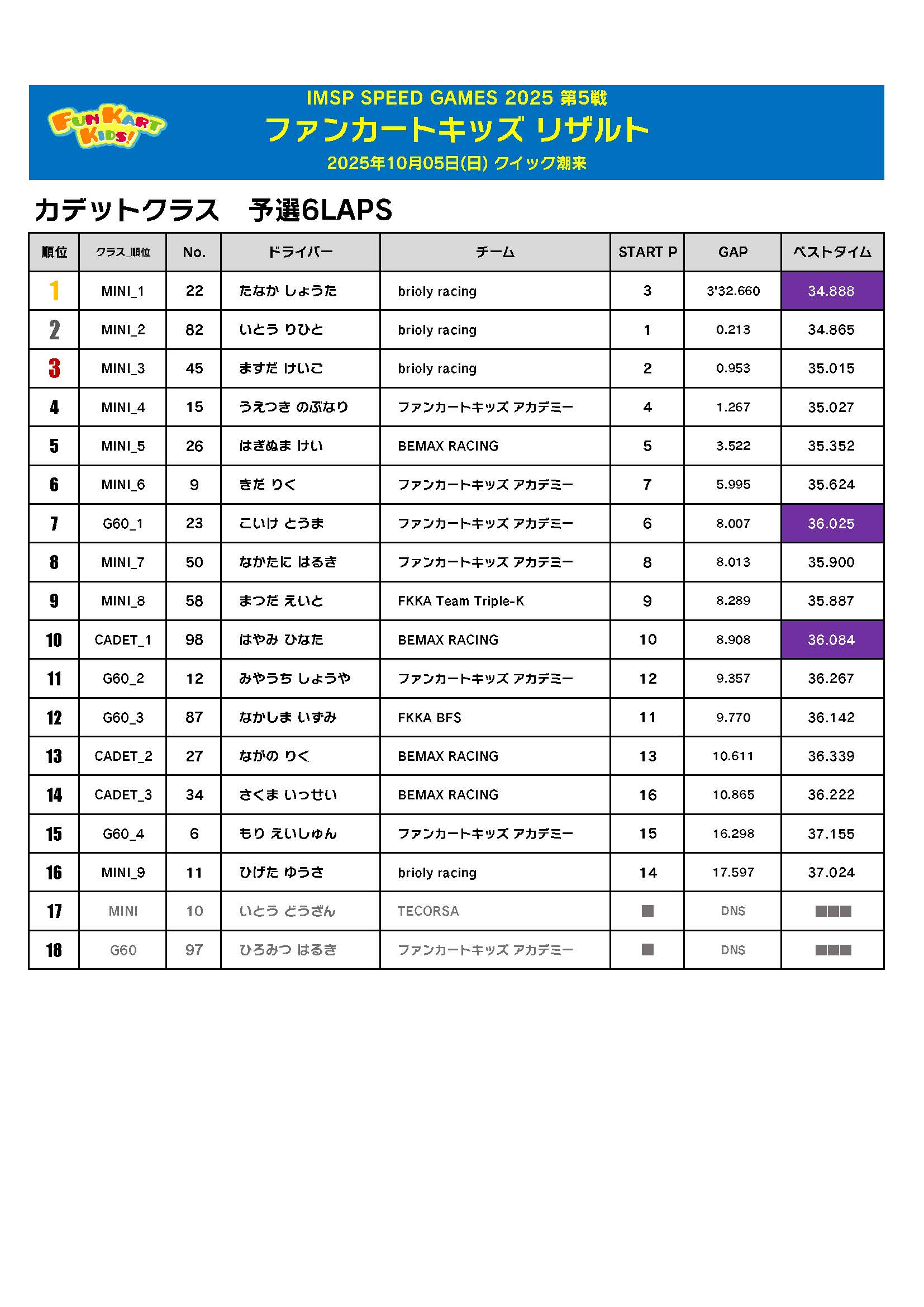 ・【インフォメーション 01】10/4(土)第5戦前日走行 タイムスケジュール