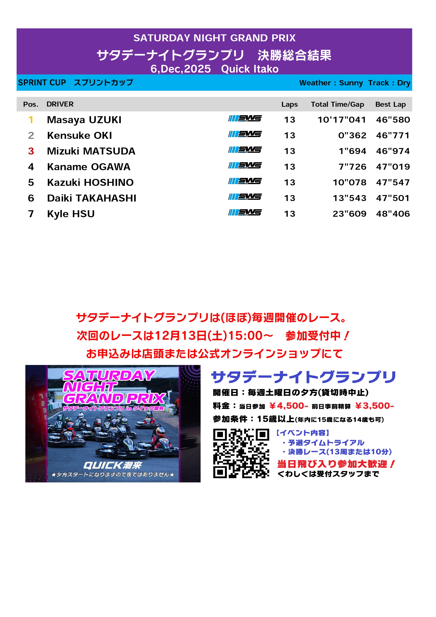 当レースはSodi World Seriesシリーズポイント獲得対象レースです。