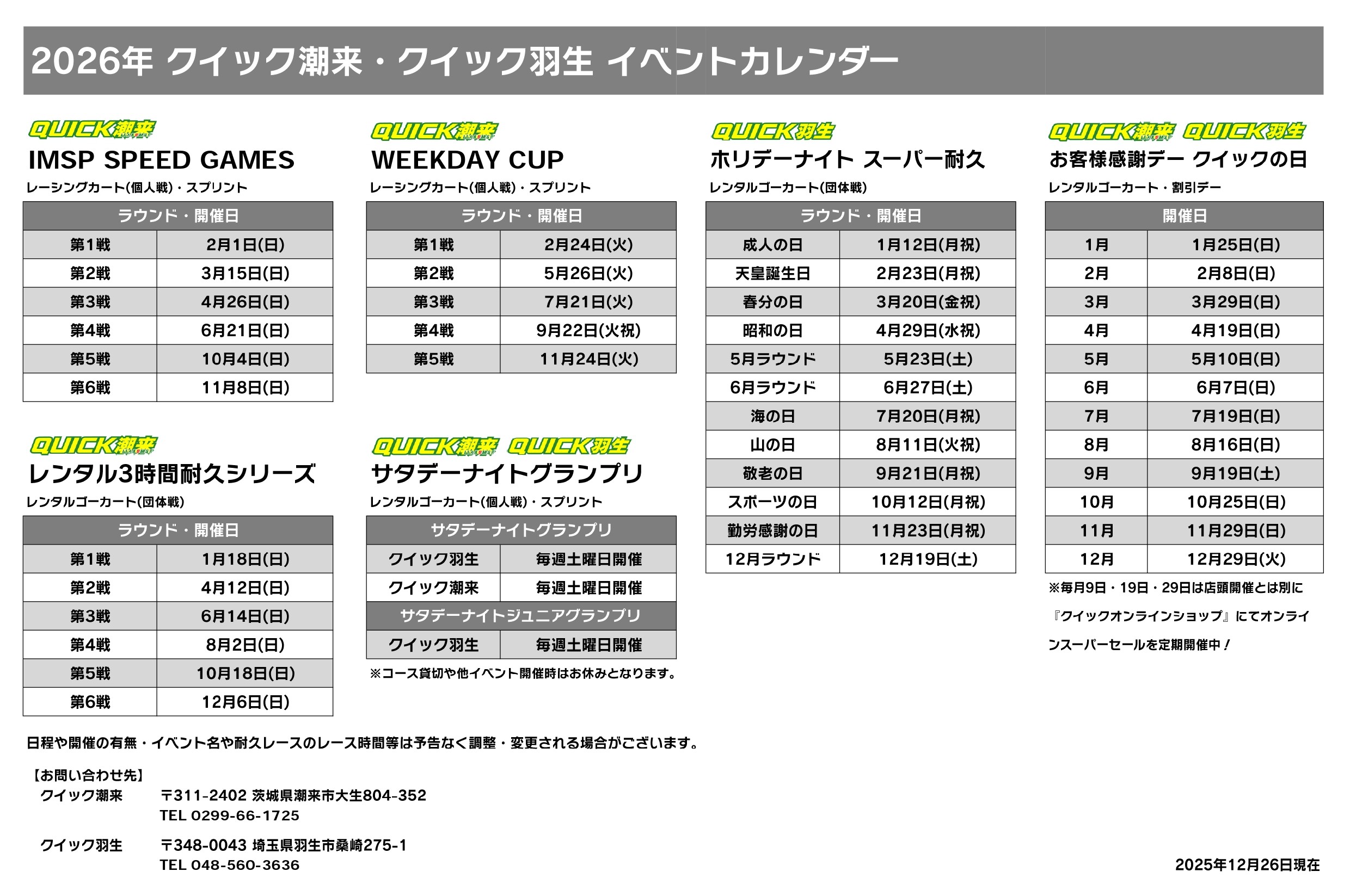当サーキットでは、1日の中で以下の時刻に